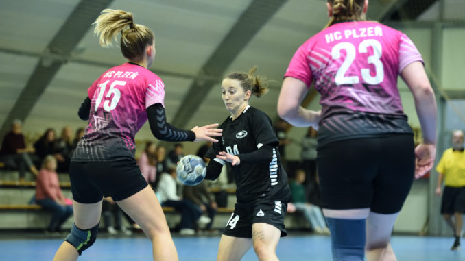 V první půli se týmy střídaly ve vedení, skončil nakonec bez vítěze. Přetahovaná pokračovala i po obrátce, rozhodla poslední desetiminutovka. Jihočešky ze stavu 23:23 udělaly sedmičkou 24:23, soupeřky dvěma trefami otočily. Strakonice srovnaly znovu ze sedmičky, následně v této činnosti plzeňská Klesová selhala, půl minuty nato domácí Klejnová z dalšího sedmimetrového hodu poslala Strakonice znovu do vedení. Následně ho ještě dvěma góly navýšily na 28:25, což rozhodlo a připsaly si první dva body.