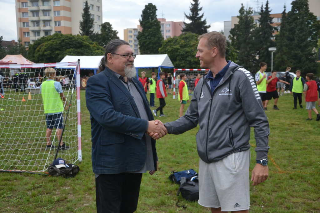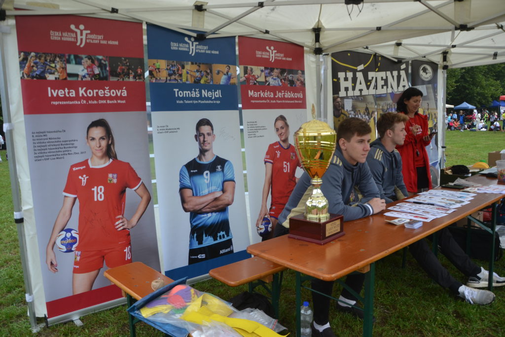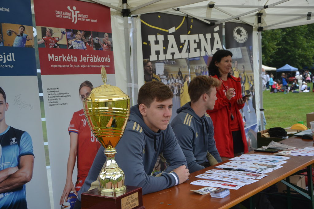 Pohár za prvenství v první lize mužů v sezoně 2021/2022 přijeli ukázat hráči strakonického áčka Adam Nejdl, Lukáš Fencl a Michal Tíkal. Ti se také všem příchozím věnovali a seznamovali je s házenou jako takovou. Děti si mohly také například vyzkoušet skok z místa do dálky. Velký ohlas pak měl pochopitelně skákací hrad, který rovněž zajistil strakonický oddíl. Nechyběly ani podepsané fotografie hráčů A-týmu či sladká odměna.