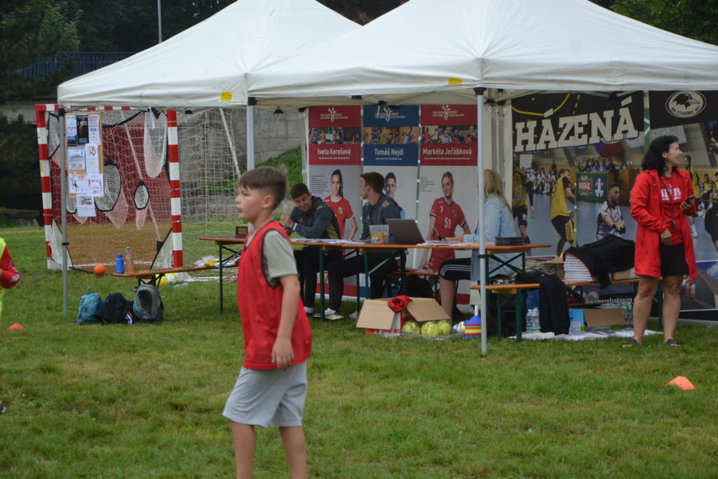 Na házenkářském stanovišti si zájemci mohli zahrát spolu s žáky strakonické házené zápas na dvě branky, čehož hojně a nadšeně využívali. Dále mohli vyzkoušet svoji mušku při střelbě do „otvorů“ v házenkářské brance, při kterých děti provázely odchovankyně strakonické házené Barbora Plojharová a Barbora Hanzelínová, které v současnosti působí v interligovém Písku.