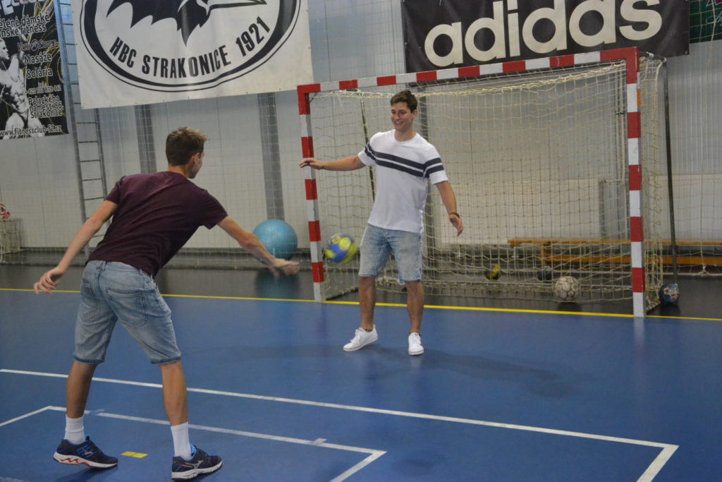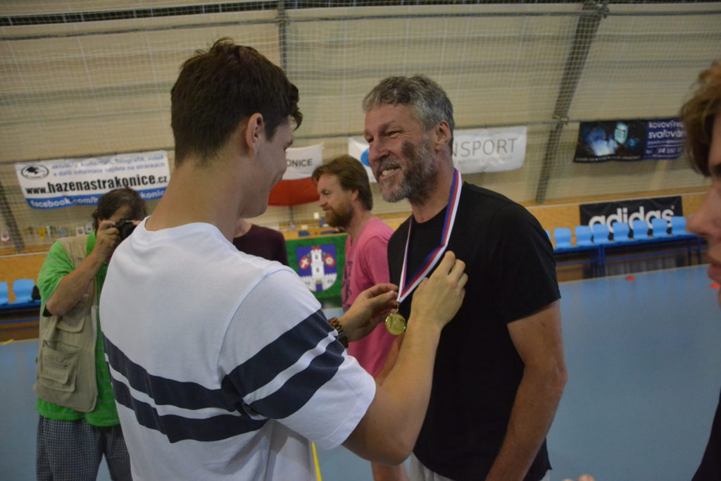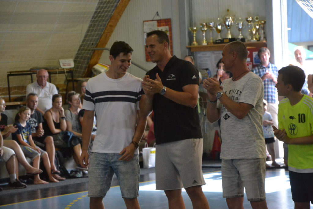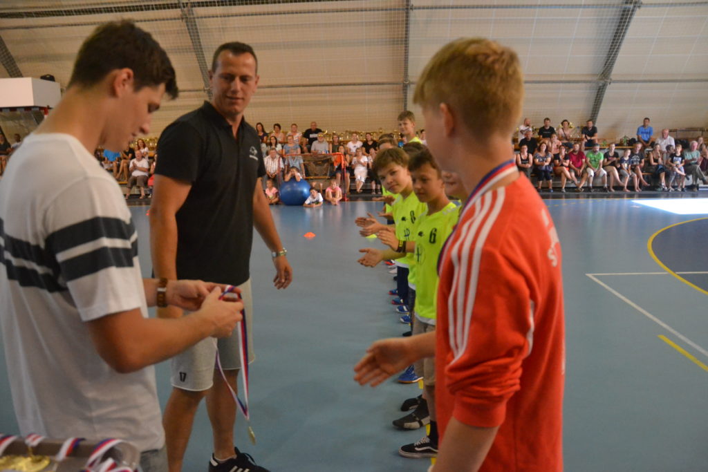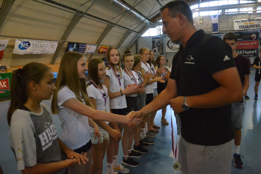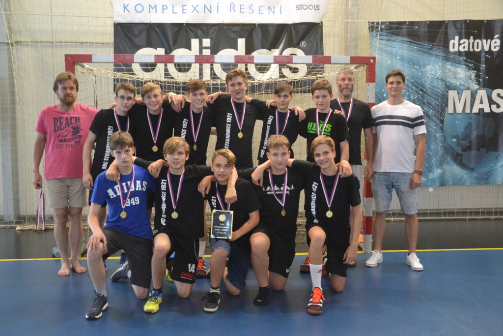 Kapitán strakonického týmu mužů Martin Mošovský a čerstvý vítěz extraligy v dresu Talentu Plzeň a strakonický odchovanec Tomáš Nejdl. Tito dva hráči byli těmi, kdo na závěr sezony v pátek 21. června v podvečer předali mladým házenkářům HBC 1921 medaile za prvenství v krajském přeboru. Stalo se tak v obloukové hale před zraky rodičů a příznivců strakonické házené.