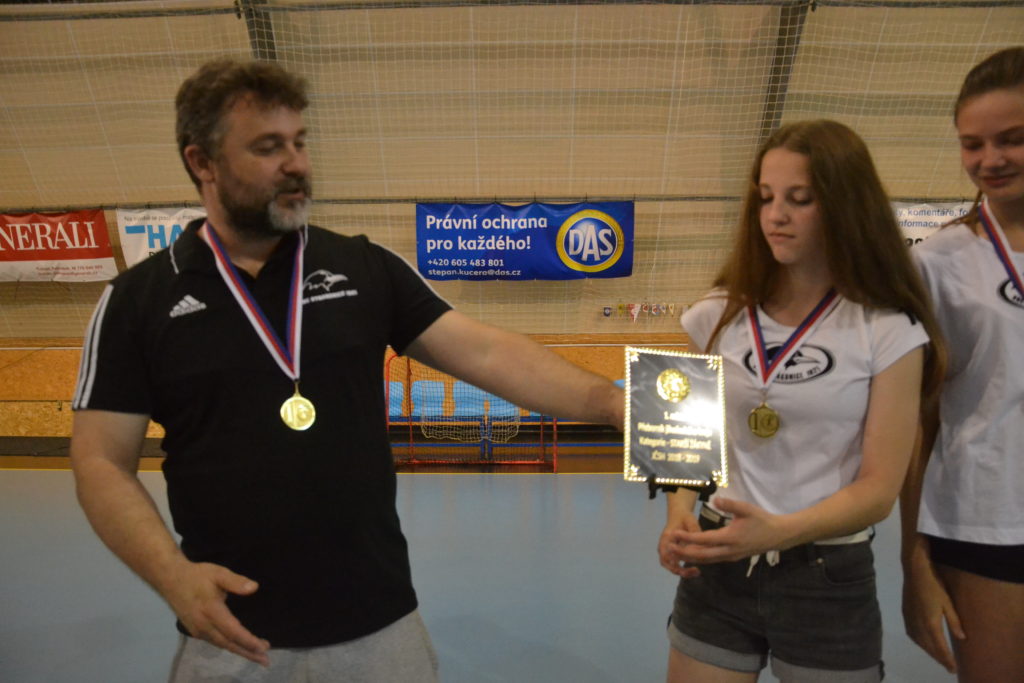 Medaile s gratulací obdržely celky starších žákyň, starších a mladších žáků. Kromě toho oddíl ještě k ukončení sezony vystavil poháry, které letos získal na republikových soutěžích. A ten největší a nejcennější, za vítězství v extralize mužů, přivezl ukázat Tomáš Nejdl.
